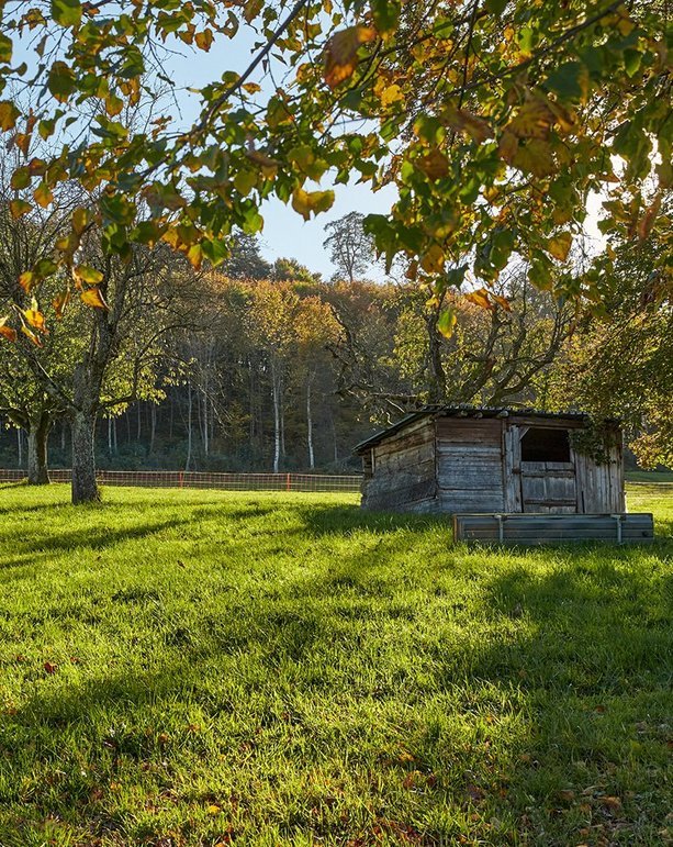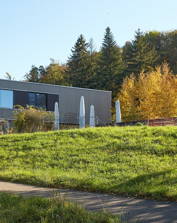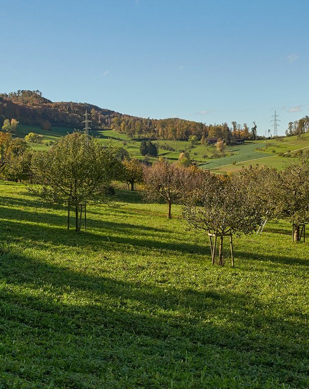 dahay, am Bienenberg, liegt Ihnen Frenkendorf zu Füssen. Bei schönem Wetter reicht die Aussicht weit bis in den Schwarzwald und ins Oberbaselbiet. Und die Natur beginnt gleich vor der Haustür: Im naturbelassenen Garten mit Sitzplätzen und einem Weiher können Sie den Tag bei einem Spaziergang, mit einem Buch oder einem anregenden Gespräch geniessen. Unser Gelände wurde von der Stiftung Natur & Wirtschaft als Naturpark ausgezeichnet und zertifiziert. Ein Wanderweg führt direkt an unserem Haus vorbei.